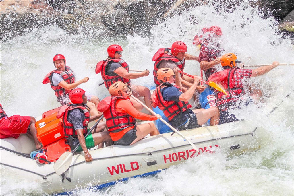 Splavovanie rieky Zambezi je považované za najdivokejší komerčný rafting na svete. To znamená, že je určený takmer pre každého. Množstvo perejí a kilometrov prejdených za jeden deň určuje hladina rieky. Zážitok je však garantovaný, či prejdete perejí 14 alebo 17. Táto poldňová aktivita býva najsilnejším zážitkom na zájazde vôbec. Bežne zdatný človek bez strachu z vody ho zvládne. Zažite pocit splavu teplej, ale dravej vody a spravte takto Vašu dovolenku viac adrenalínovou. Cena zahŕňa: dopravu, rafting, výstroj. Poplatok za vstup do národného parku vo výške 10 USD /1 osoba platí každý osobne priamo na mieste. V mesiacoch apríl a máj býva najvyššia hladina rieky a z bezpečnostných dôvodov sa rafting často neprevádzkuje. Pokiaľ je toto dôvod Vašej cesty do Afriky, vyberte si iný termín. V prípade, že máte aktivitu objednanú a nebude sa z týchto dôvodov organizovať, sumu vám v plnej výške vrátime.