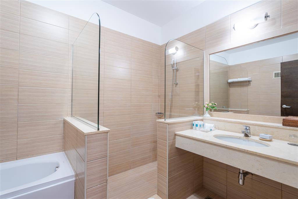 klimatizácia • wifi (iba pre 2 zariadenia) • balkón alebo terasa • minibar (za poplatok) • chladnička • TV • sušič vlasov • trezor • telefón • žehlička so žehliacou doskou (možnosť spýtania sa na recepcii) • kávovar a set na prípravu kávy • Ala carte (za poplatok)
