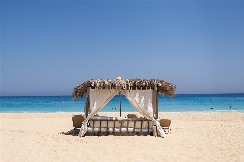 Nádherný biely piesok, žiarivo modrá voda, ktorá sa trblieta na teplom egyptskom slnku. Zátoka Almaza Bay je ideálnym miestom pre dovolenku plnej oddychu, relaxácie a luxusu.