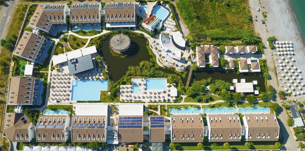 379 izieb v niekoľkých budovách areálu (1-2 podlažné), vstupná hala s recepciou, hlavná reštaurácia, 3 reštaurácie a la carte, snack bary, bary, SPA centrum, diskotéka, kaderníctvo, lekár, práčovňa, fotograf, požičovňa áut, 3 bazény, detský bazén, vonkajšia vírivka, vnútorný bazén, slnečná terasa, ležadlá, slnečníky a osušky zdarma.