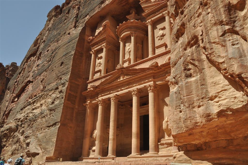 Jeden z divov sveta....PETRA. Švajčiarsky cestovateľ Burckhardt objavil toto mesto v prestrojení v roku 1812. Tajomnú, ba priam magickú atmosféru si mesto udržalo dodnes. Splnený sen. Celodenná prehliadka Petry, ktorá je ukrytá hlboko v horách, ktorým dominuje Áronova hora s hrobkou Mojžišovho brata. Samotná cestička do Petry je dlhá takmer 2 kilometre, miestami je široká len pár metrov a hlboká až do 80 metrov. Celkovú neuveriteľnú atmosféru dotvára pomerne rušný život. Na každom kroku vás míňajú oslíky a koče, ktoré odvezú za poplatok aj unavených turistov. Stretnete beduínske deti, ktoré sa snažia predať rôzne drobnosti, ale aj unavené túlavé psy, ktoré hľadajú kúsok chládku v tienistých miestach. Všetko to vytvára jedinečnú a nezabudnuteľnú atmosféru a to najlepšie vás ešte stále len čaká. Cez legendárny kaňon sa dostaneme pred červenú pokladnicu Khazneh, známej z filmu Indiana Jones. Celá pokladnica je vytesaná do skaly tak dômyselne, že je prakticky nepoškodená eróziou, alebo inými poveternostnými výkyvmi. Kultúra antického kmeňa Nabatejcov sa nám ukáže v celej kráse. Mesto mŕtvych, kolonády, divadlo a do toho hra svetla na červenom pieskovci sa postarajú o nádherné zábery. Aktívnejší vystúpia až na úplný koniec k najväčšej pamiatke ku kláštoru Ad Deir. Ku kláštoru sa dostanete úžasnou kolonádovou ulicou, následne magickými 800 schodmi, ktoré vás dovedú až k monumentálnemu kláštoru postavenom na náhornej plošine, odkiaľ je úžasný výhľad na okolitú púšť. Vo vstupných dverách, ktoré sú vysoké 8 metrov sa budete cítiť ako mravec. Cez Siq sa vrátime späť a zatvoríme za Petrou dvere. Ostane skrytá v týchto tichých, červených horách.