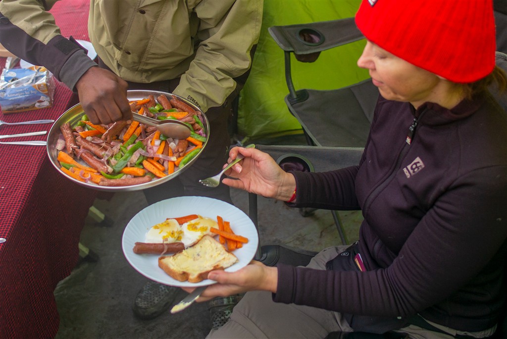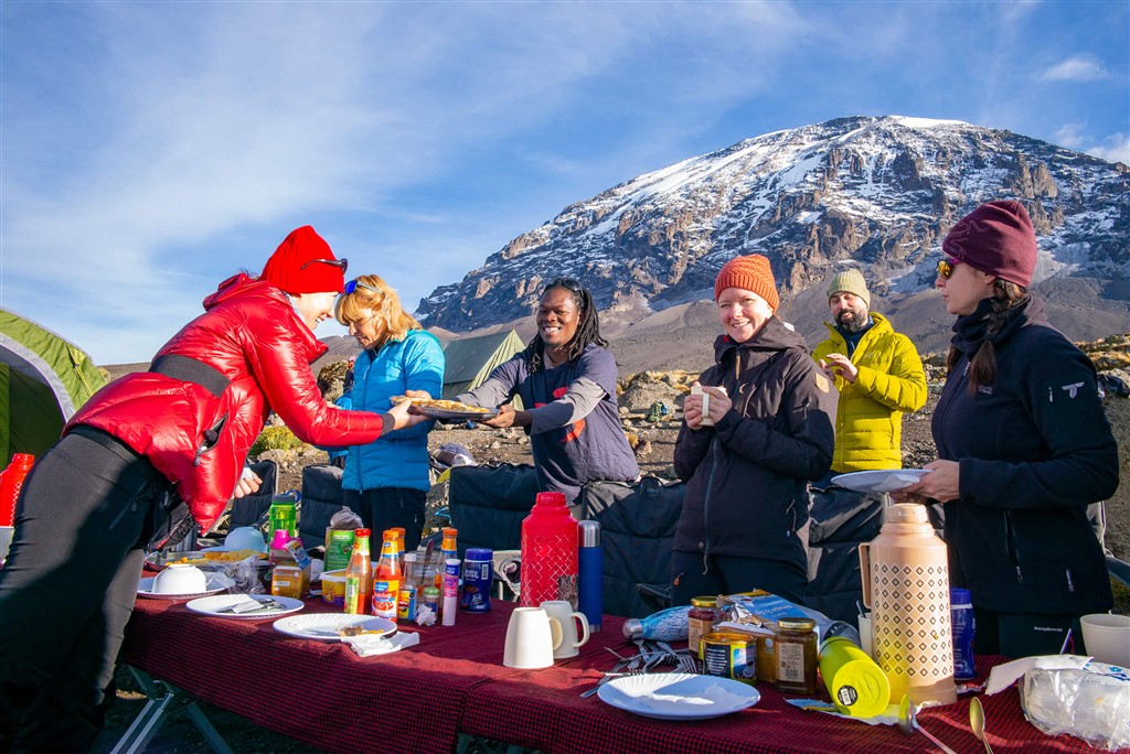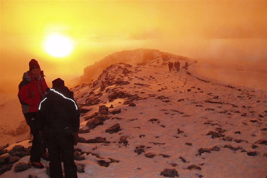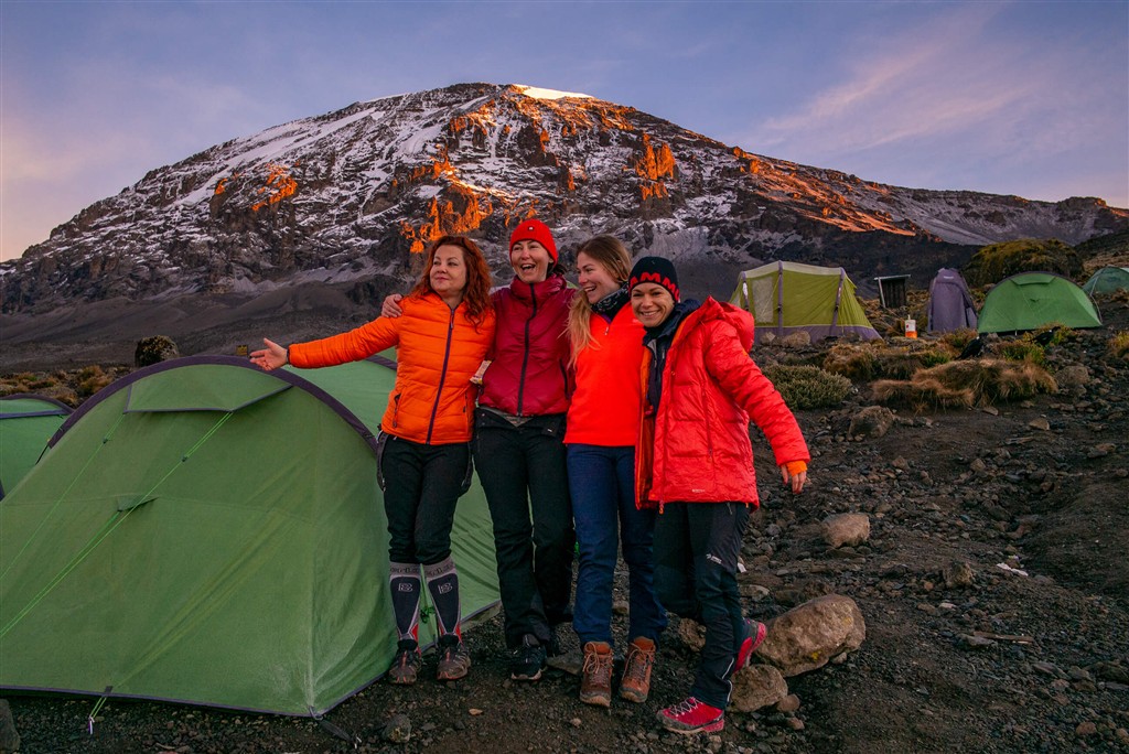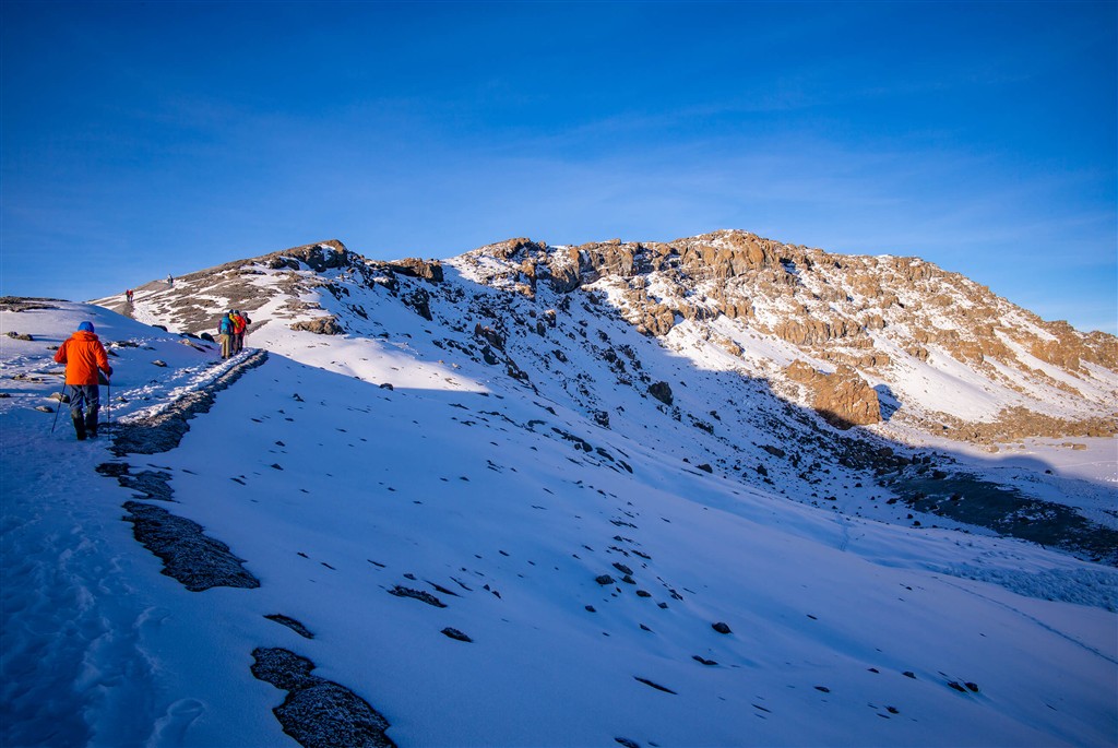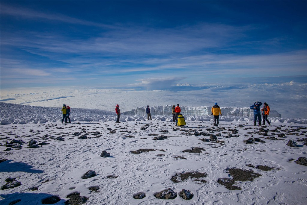 Výstup 1100 výškových metrov na úseku 4,5km nám zaberie 6-7 hodín. Fyzicky, ale hlavne psychicky najnáročnejšia je časť stúpajúca na Stella Point na okraji krátera (5735m.n.m.). Za dobrého počasia sa práve tu naskytá jeden z najkrajších východov slnka. Po dosiahnutí najvyššieho vrcholu Afriky – Uhuru peak, 5895m.n.m. si užijeme tento moment a nádherné ľadovce na vrchole. Čím sme lepšie aklimatizovaní, tým si viac vrchol užívame! Po krátkom pobyte na vrchole začneme 13.5 km zostup do kempu Mweka (3100m.n.m.). Zastavíme sa v Base campe, kde si oddýchneme v našich stanoch (naša výprava má rezervované najlepšie miesta), dostaneme zaslúžený obed a takto posilnení zbiehame dole. Každých 100 metrov sa nám dýcha lepšie a lepšie a cesta dole je prekvapujúco rýchla. Sme unavení, ale šťastní.