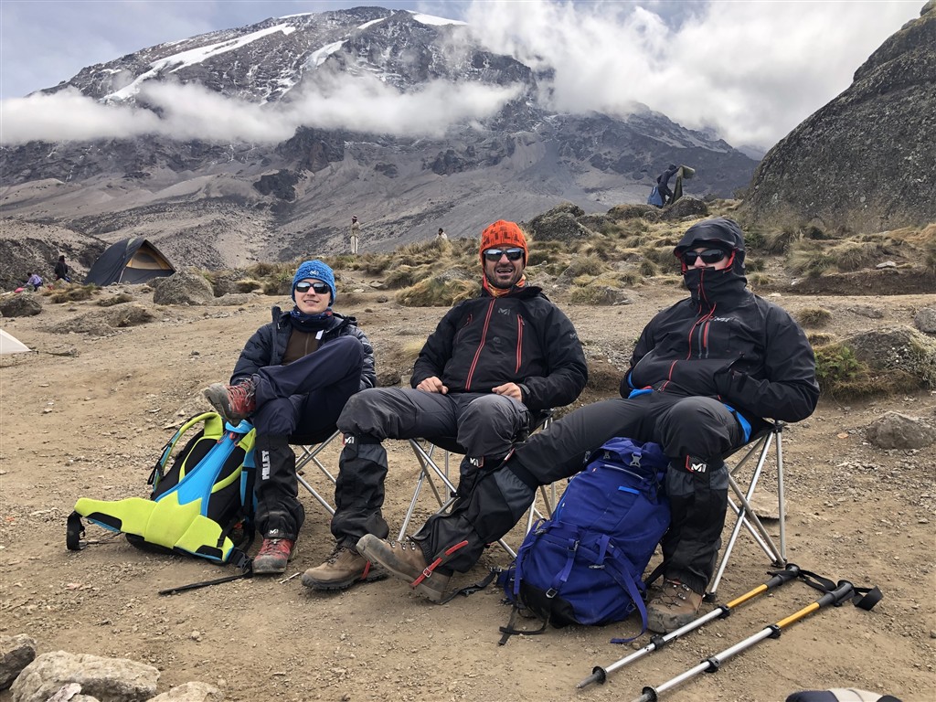 Po skalistom chodníku pokračujeme na východ a kocháme sa pohľadom na ľadovec Northern Icefield, ktorý neuvidí 99% trekerov na Kilimandžáre. Dnes je zrejme najnáročnejší deň treku a my stúpame až po križovatku, ktorá mieri smerom na Kibo. Tu sa vydávame na juhovýchod k Lava Tower, kde chceme obedovať vo výške 4600 m. Vyrazili sme ráno okolo 7.00 a na Lava Tower prichádzame okolo 12:00. Výstup nie je technicky náročný, ale výšku už každý z nás cíti a ideme pomaličky krok za krokom. Hore na Lava Tower postavíme náš veľký expedičný stan, ktorý nás chráni proti nepriazni počasia, ktoré je v týchto výškach drsnejšie. Na Lava tower zvykne už snežiť. Naobedujeme sa, dáme si teplú polievku, ryžu, teplý čaj. Doplníme tekutiny a zohrejeme sa. „Kúsok“ za Lava Tower nás chodník dovedie na Arrow Glacier vo výške 4880m.n.m. Následne nastáva technicky ťažší zostup, ktorý je však nádherný a my začíname klesať do Barranco kempu vo výške 3950m.n.m. Tu prespíme. Dnešný deň bol veľmi náročný, no opäť absolútne iný s množstvom krásnych výhľadov. Po dvoch tvrdých aklimatizačných dňoch je našim trikom oddych (opäť aj tu máme zlepšenia).