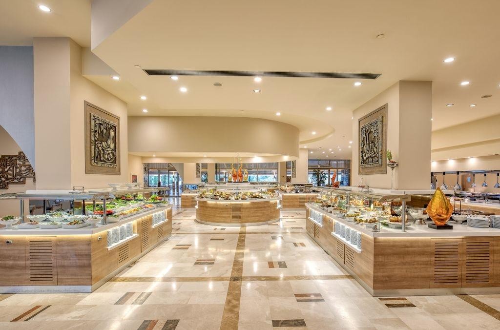 6 a la carte reštaurácií (turecká, stredomorská, vzdialený východ, talianska, medzinárodná, turecké raňajky, za poplatok, 1x za pobyt zdarma, nutná rezervácia vopred)