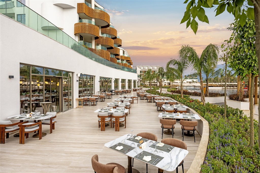 večere v reštauráciách s obsluhou, každá k dispozícii raz počas pobytu 18.30-21.30 (nutná rezervácia, talianska, ázijská, turecká zdarma, steak a druhá ázijská za poplatok)