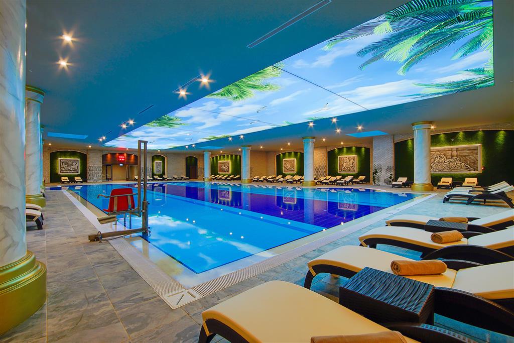 Ultra All Inclusive raňajky (07:00-10:00), neskoré raňajky (10:00-11:00), obed (12:30-14:30) a večera (18:30-21:00) • snacky: dezerty, zmrzlina, gözleme, kebab, hamburgery, cestoviny, pizza, ovocie , šaláty (12:00-16:00) • polnočný snack (23:00-02:00) • nealkoholické nápoje, vybrané miestne a importované alkoholické nápoje v snack bare (10:00-24:00), v lobby bare 24 h, v bazénovom bare (09:00-24:00), na diskotéke (23:00-02:00) • nealkoholické nápoje, pivo, víno v plážovom bare (09:00-18:30) • káva, čaj v cukrárni (09:00-24:00) • minibar
