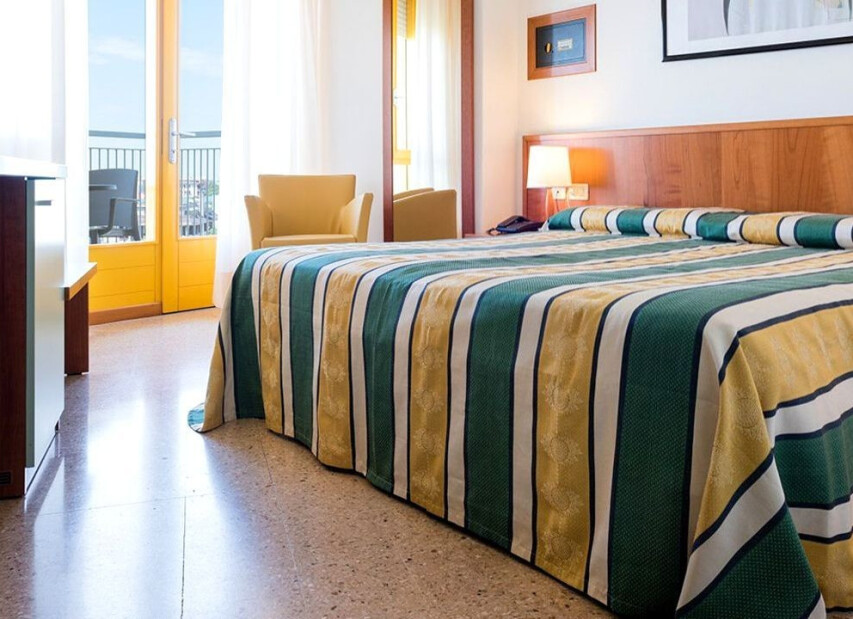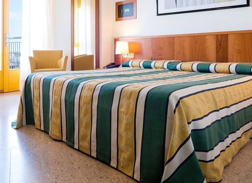 pokoj s manželskou postelí a dalším lůžkem nebo patrovou postelí, vhodné pro dítě max 13,99 let, hlavní budova, patro, balkon, výhled na moře, většina pokojů, klimatizace, klimatizace v ceně, TV, satelit, Wi-Fi na pokoji, trezor, telefon, minibar, sprcha, (sprchový kout), bidet, fén, parkoviště, dle dostupnosti, nástupní dny kdykoli, min. pobyt standardně 3 noci, příjezd od 16:00, odjezd od 08:00 do 10:00