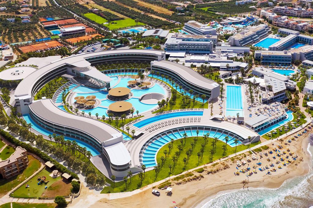 vstupná hala s recepciou • Wi-Fi v rámci hotela zdarma • internetový kútik zdarma • konferenčné miestnosti • hlavná reštaurácia • Thymari taverna (grécka kuchyňa) • Street food Snack • Wok & Chopsticks Restaurant (a la carte, ázijská kuchyňa) • Argentinian Steak House Restaurant (a la carte, argentínsa kuchyňa, 1x za pobyt zdarma) • lobby bar • bar pri bazéne • 2 vonkajšie bazény so slanou vodou • aquapark • amfiteáter • športové aktivity: aerobik, aqua gym, pilates, joga, step, zumba, šípky, basketbal, volejbal, boccia, vodné pólo, soccer, stolný tenis • biliard (za poplatok) • tenisová akadémia (za poplatok) • disco • wellness (od 16.rokov) - vnútorný vyhrievaný bazén, sauna, hamman, kryoterapia (nutná rezervácia vopred), salón krásy (za poplatok) • fitnes • služby lekára • minimarket • šperky • animácie • grécky večer