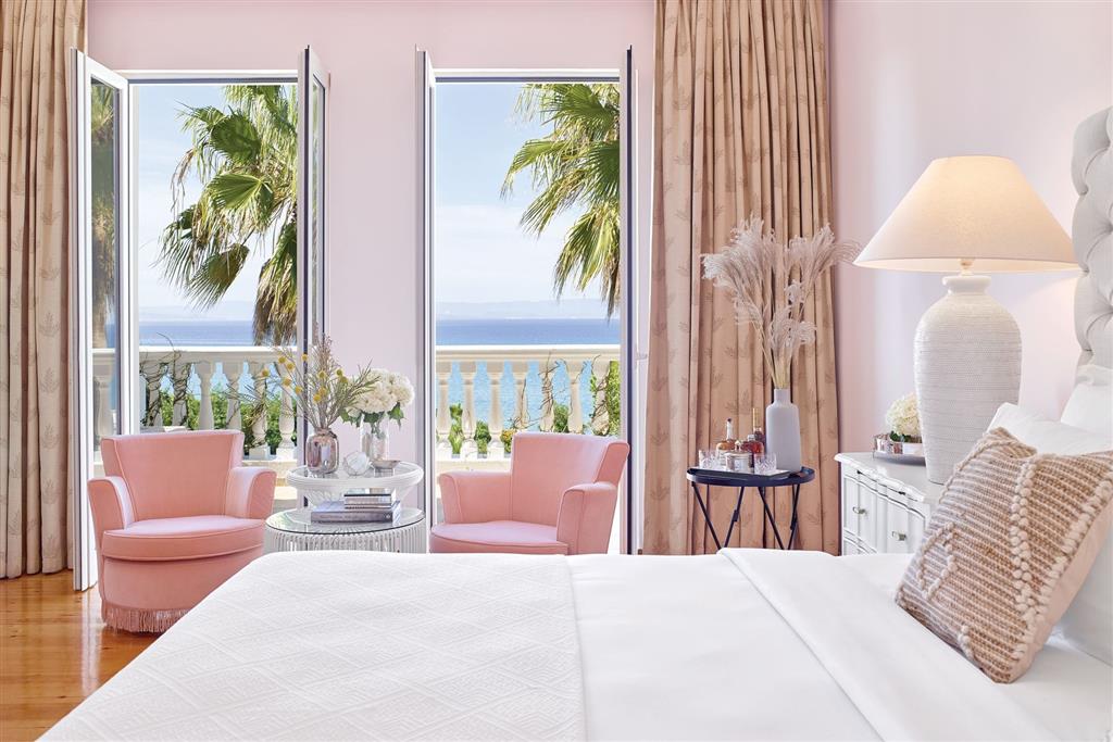 dvojlôžková izba typu Luxury s výhľadom na more s možnosťou až 2 prísteliek • rodinné izby, suity a vily s privátnym bazénom za príplatok • kúpeľňa s WC a sušičom na vlasy • klimatizácia • bezplatné Wi-Fi pripojenie • TV • trezor • set na prípravu kávy a čaju • župan a papučky • telefón • prémiová kozmetika • minibar • balkón alebo terasa