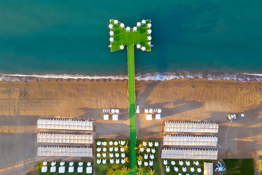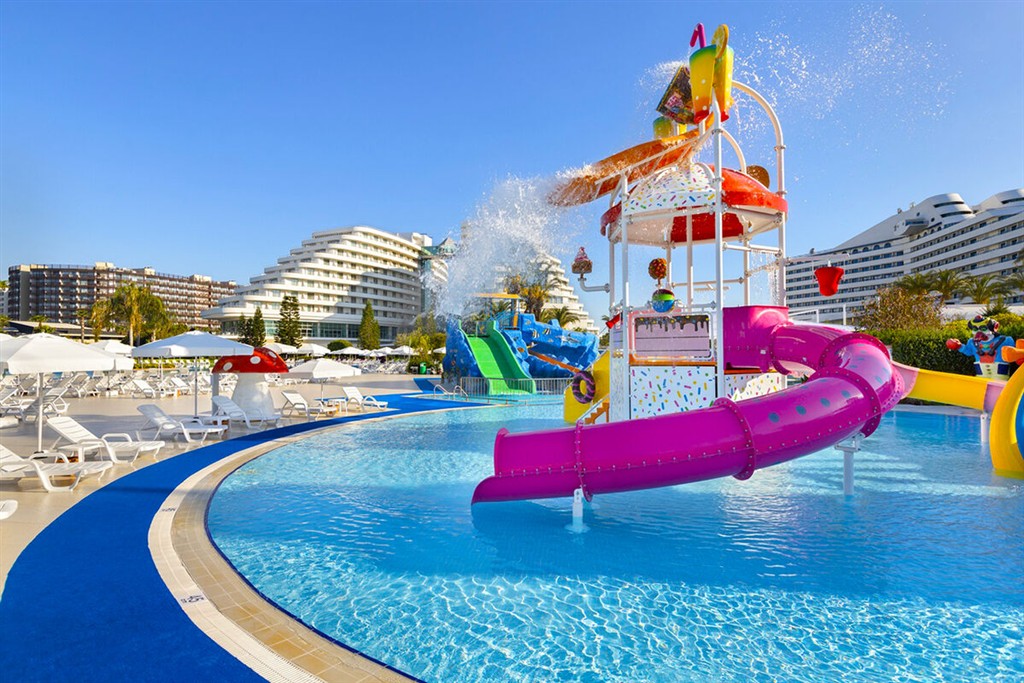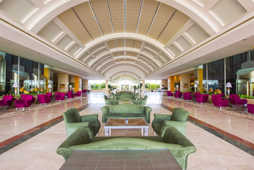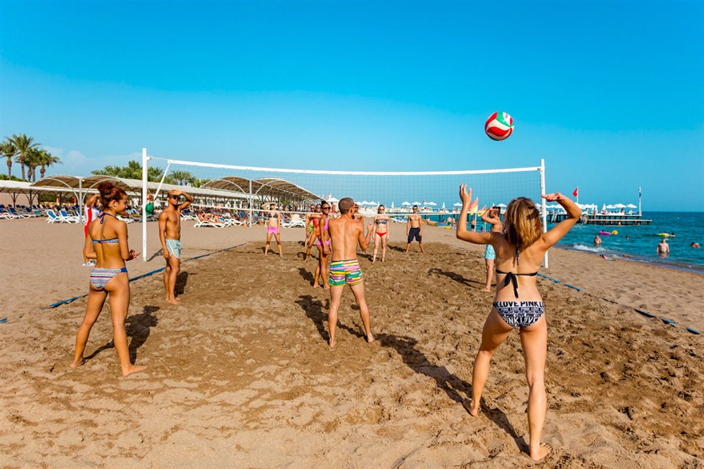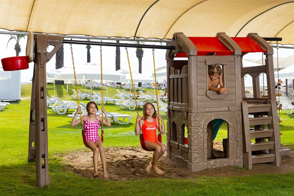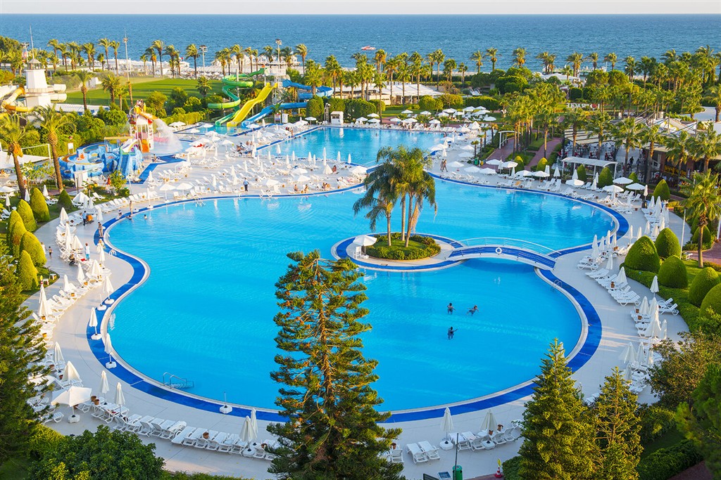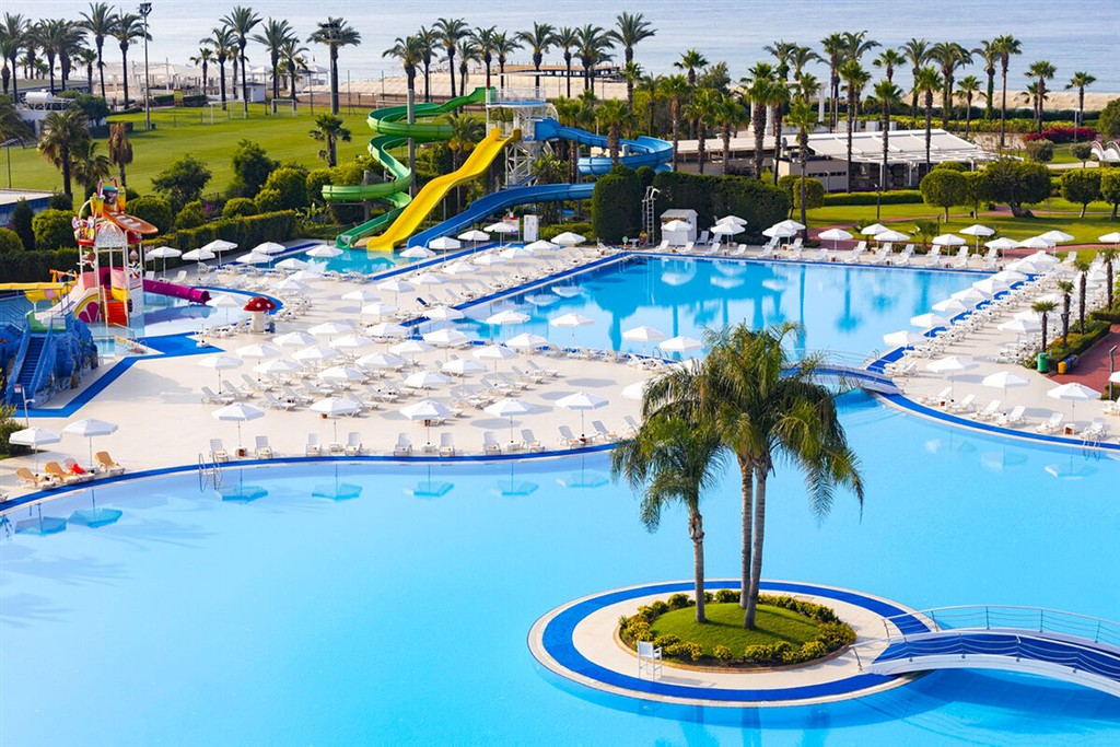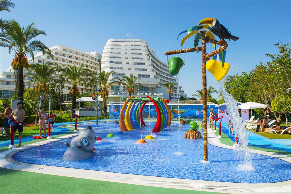 691 izieb • hotel pozostávajúci z hlavnej 9 poschodovej budovy • hlavná reštaurácia • 4 a la carte reštaurácie (za poplatok) • Wi-Fi (zdarma) • niekoľko barov • kino • vonkajšie bazény • detský bazén • vodné šmýkačky pre deti aj dospelých • turecké kúpele • sauna • fitness centrum • basketbal • futbal • tenisový kurt (otvorený od 1. 6.) • plážový volejbal • stolný tenis • šípky • minigolf • denné a večerné animácie • miniklub • živá hudba