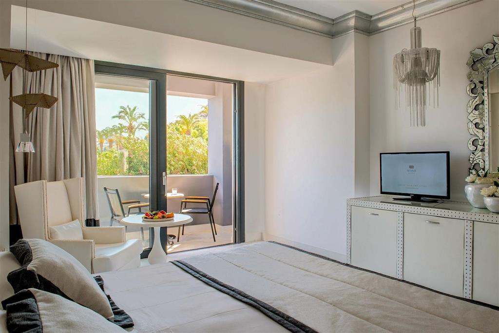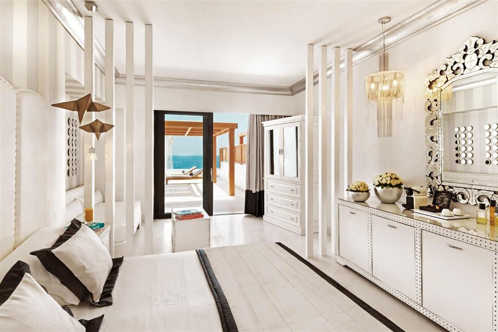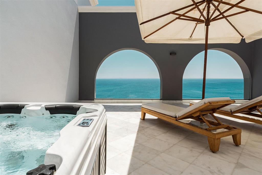 Premium Suita, Výhľad na more, Jacuzzi: spálňa a obývacia izba, 2 kúpelne/WC, klimatizácia, 2 balkóny, terasa (70 m2) + jacuzzi, ležadlá a slnečníky.