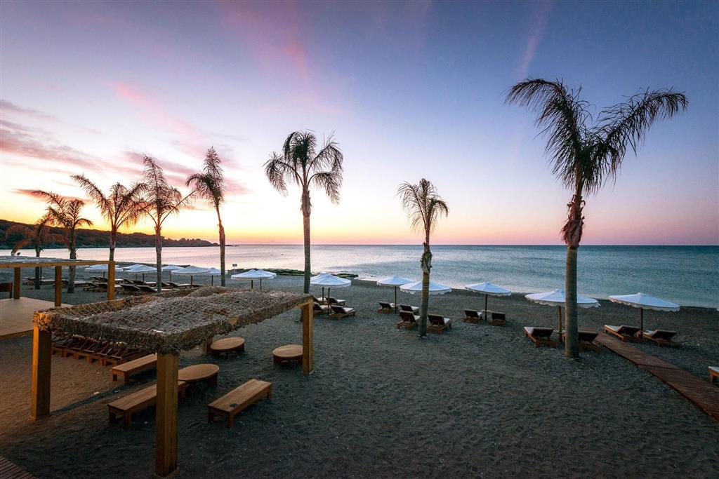 Dlhá piesočnato-okruhliaková pláž priamo pri hoteli. Ležadlá a slnečníky (zadarmo), plážové osušky (za depozit).