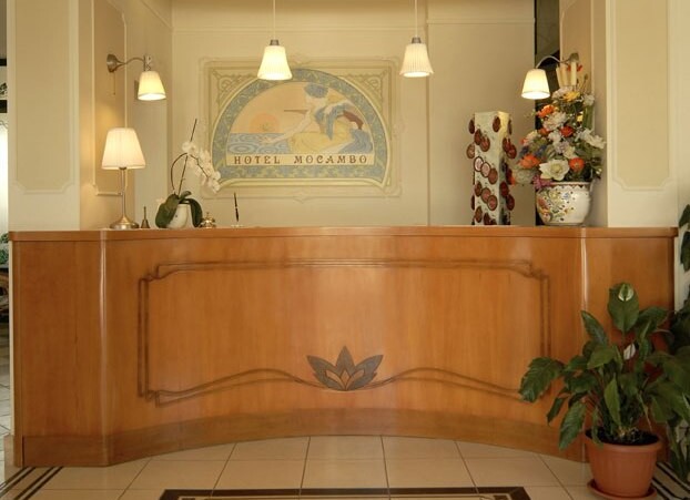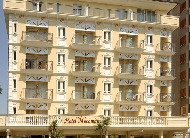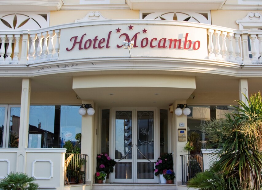 Velmi elegantní hotel MOCAMBO*** (Via Cimarosa) se nachází v jižní části letoviska nedaleko promenády, privátní pláže i obchůdků, kaváren a restaurací. Klientům je k dispozici recepce, Wi-Fi, výtah, restaurace, bazén s hydromasáží, posilovna, animace a miniklub, půjčovna kol (omezená kapacita, za poplatek) a privátní parkoviště.