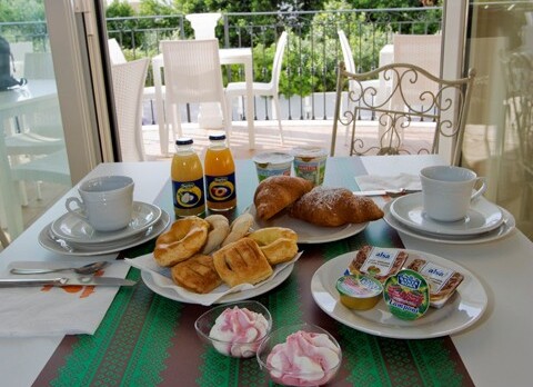 snídaně formou bohatého bufetu (typu brunch); oběd nebo večeře podávané v restauraci na pláži, jednochodové menu (první nebo druhý chod), 1/2 l vody a sklenka vína nebo nealkoholického nápoje. Klienti jsou vybaveni poukázkami, které mohou uplatnit libovolně za oběd nebo večeři kterékoli dny., bezlepková strava, strava pro alergiky na laktózu, vegetariánská strava