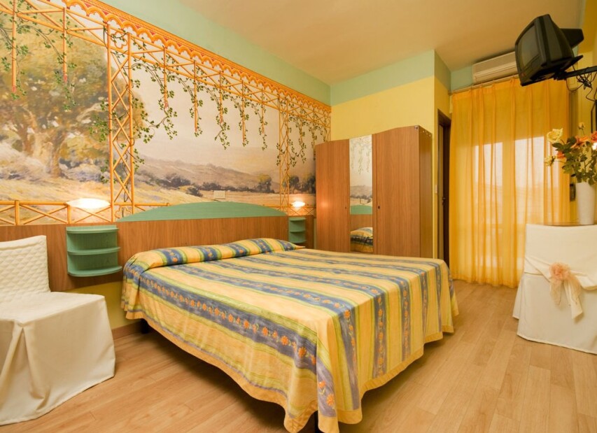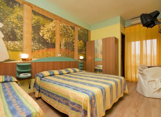 pokoj s manželskou postelí, případně s přistýlkou nebo patrovou postelí. 4. lůžko je vždy patrová postel, kterou doporučujeme pro děti do 16 let, hlavní budova, balkon, klimatizace v ceně, bezbariérový, pokoje umístěné v 1. patře, na vyžádání, TV, Wi-Fi na pokoji, trezor, telefon, lednice, sprcha, (sprchový kout), bidet, fén, parkovací místo, na parkovišti u hotelu nebo na vzdálenějším parkovišti cca 30 m od hotelu, parkovací místo, v garáži, na vyžádání, 8 €/den, kryté, nástupní dny kdykoli, min. pobyt standardně 3 noci, kratší pobyt na vyžádání a za příplatek v cestovní kanceláři 240 Kč/osobu/den, příjezd od 13:00 do 21:00, odjezd od 08:00 do 10:00 hod., pozdější odjezd za poplatek 50 €