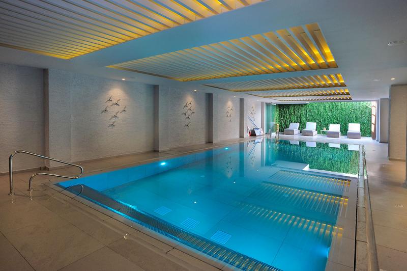 vstupná hala s recepciou, WiFi (zdarma), reštaurácia s terasou, lobby bar, bar pri bazéne /snack bar, plážový bar Skifos, vonkajší bazén s oddelenou časťou pre deti, vnútorný bazén, posilňovňa, výťah, minimarket, práčovňa (za poplatok), masáže a SPA (za poplatok), ležadlá a slnečníky na pláži (zdarma), o vhodnosti pre imobilných klientov sa prosím informujte v CK
