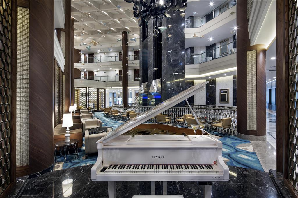 Vstupná hala s recepciou, hlavná budova a súkromné vilky zasadené do píniového lesa. Hlavná reštaurácia, lobby bar, 9 a la carte reštaurácií, sushi bar, niekoľko barov, snack bary, hlavný bazén s morskou vodou a jacuzzi (lehátka, slnečníky a osušky zadarmo), výťah v bazéne pre handicapovaných klientov, relaxačný bazén, vnútorný bazén, 5 bazénov (v časti Lagoon a Cedar House), detský bazén, aquapark s 11 tobogánmi (nie je vhodný pre deti 0-8 rokov), športový areál, záhrada, požičovňa bicyklov, požičovňa áut, služba lekára (24 h), práčovňa, parkovisko .