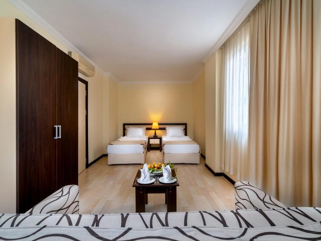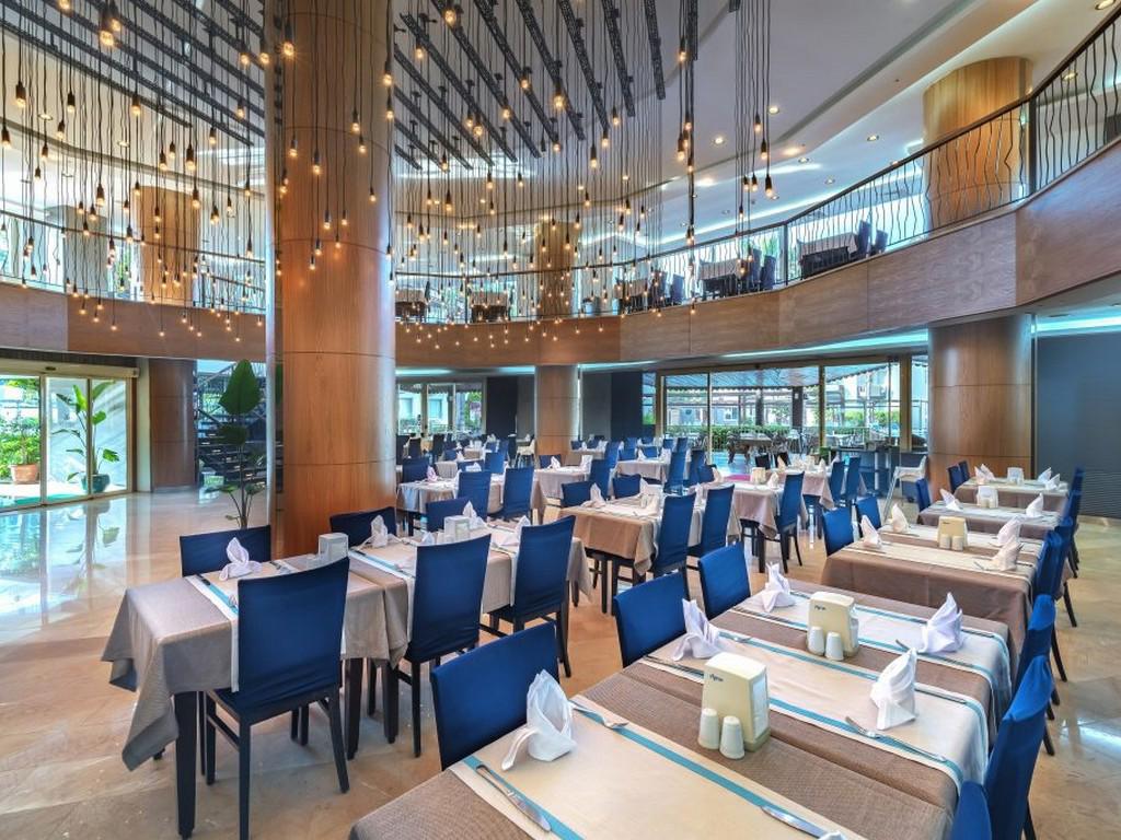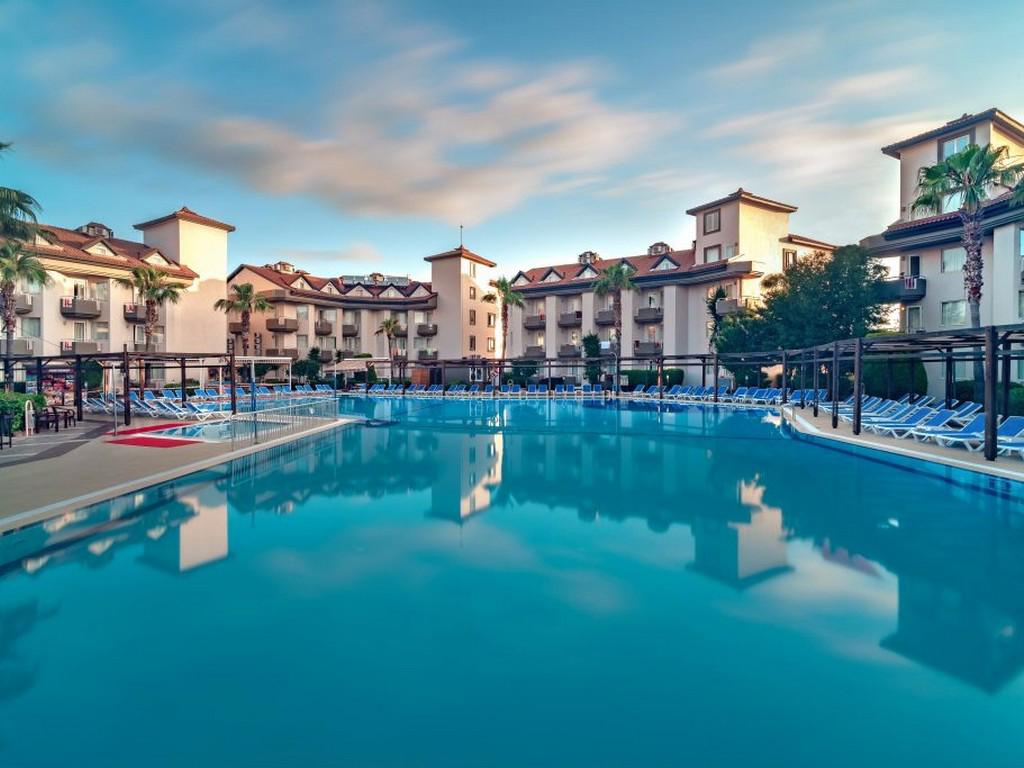bazény so slnečníkmi a ležadlami • vnútorný bazén • tobogany • hlavná reštaurácia • bary (lobby, pool, beach) • živá hudba • diskotéka • fitness • vodná gymnastika • stolný tenis • biliard • plážový volejbal • vodný aerobik • šípky • vodné pólo • boccia • turecký kúpeľ • sauna • za poplatok: SPA centrum • procedúry tureckého kúpeľa • kaderníctvo • obchody • práčovňa • lekárska služba • požičovňa áut • vodné športy na pláži