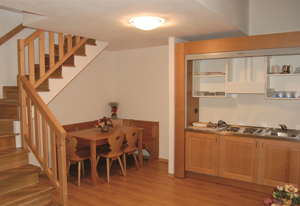 quadrilo 8: 90 m2 - 1. podlažie apartmánu: 1 spálňa s manželskou posteľou, 1 spálňa s 1 samostatným lôžkom, obývacia izba s kuchynským kútom a rozkladacím gaučom pre 2 osoby, 1 sociálne zariadenie, balkón; 2. podlažie apartmánu: priechodná miestnosť s 1 samostatným lôžkom, 1 spálňa s manželskou posteľou či 2 samostatnými lôžkami