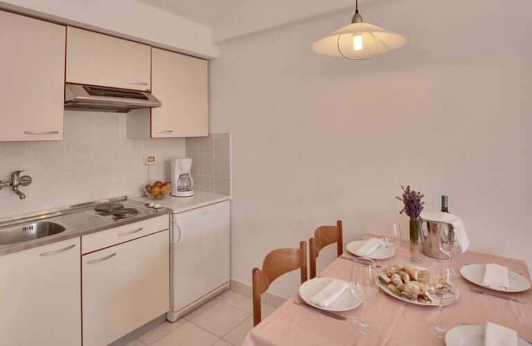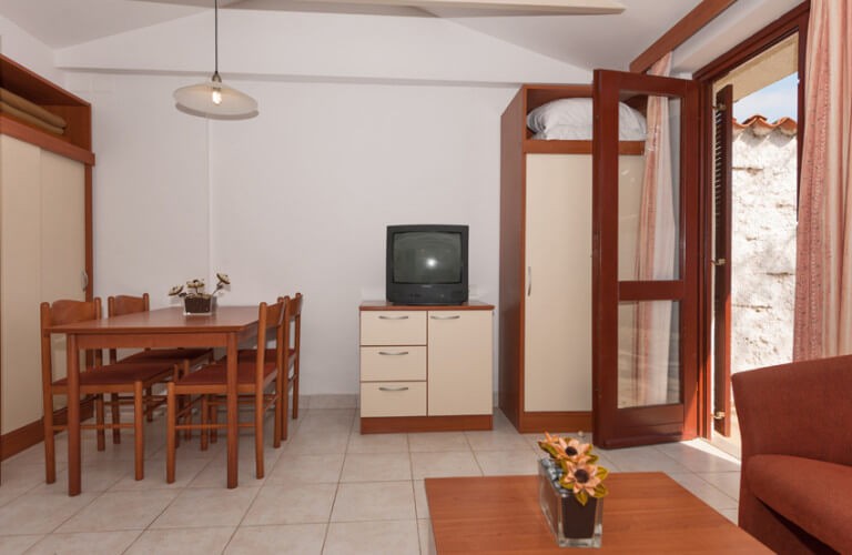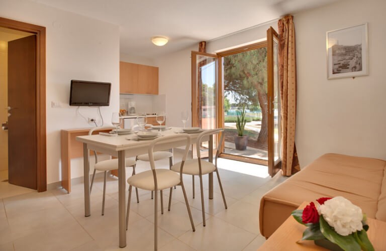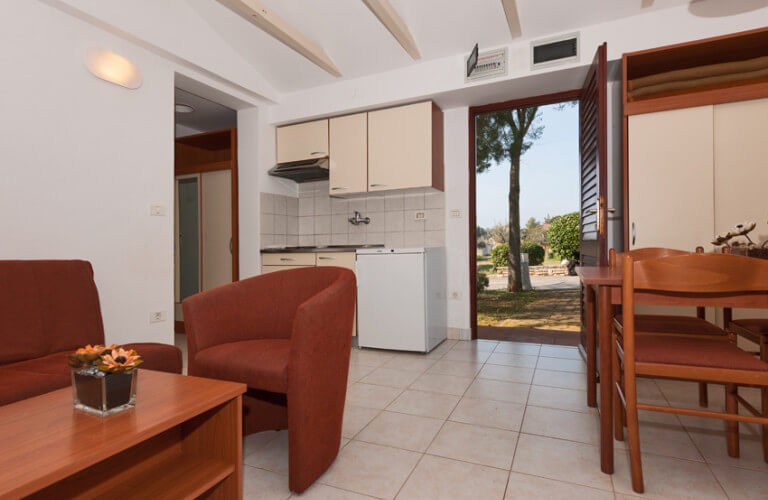 Studia o rozloze cca 30 m2 disponuje vlastním sociálním zařízením, dvěma oddělenými lůžky, přistýlkou pro 1 osobu ve formě rozkládacího křesla, kuchyňským koutem se základním vybavením, telefonem, trezorem, SAT/TV, fénem, terasou a klimatizací.