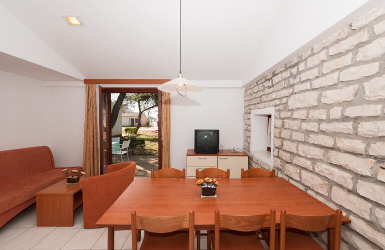Apartmán o rozloze cca 33 m2 disponuje vlastním sociálním zařízením, oddělenou ložnicí se dvěma oddělenými lůžky, obývacím pokojem s rozkládacím lůžkem (160×190) pro dvě osoby, klimatizací, kuchyňským koutem se základním vybavením, telefonem, fénem, trezorem, SAT/TV a terasou.