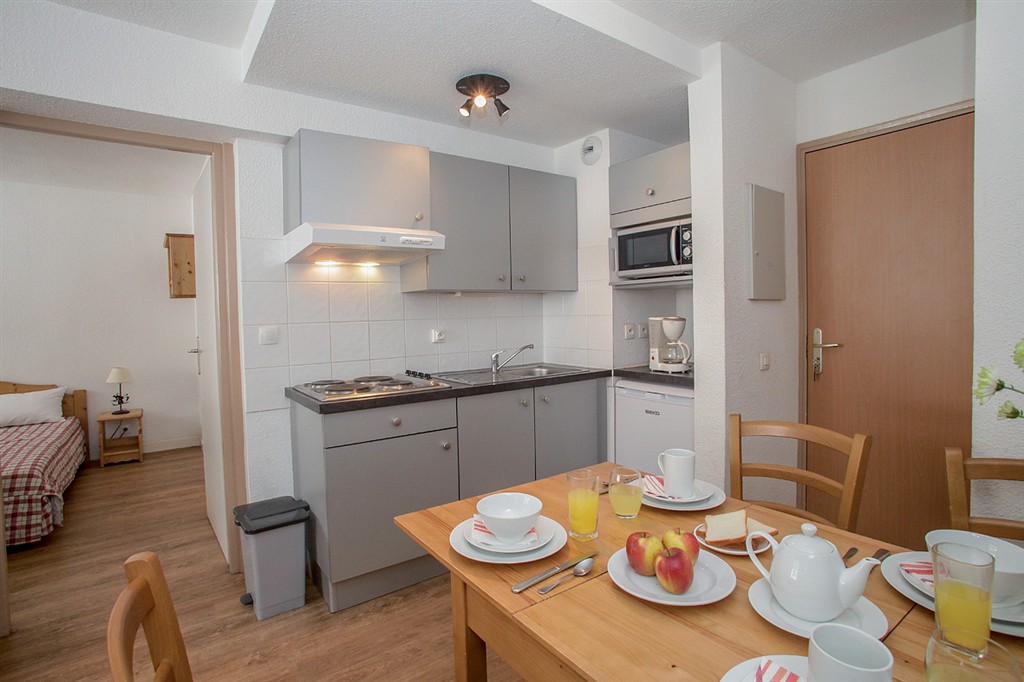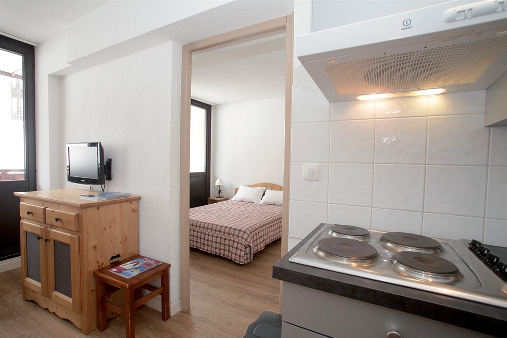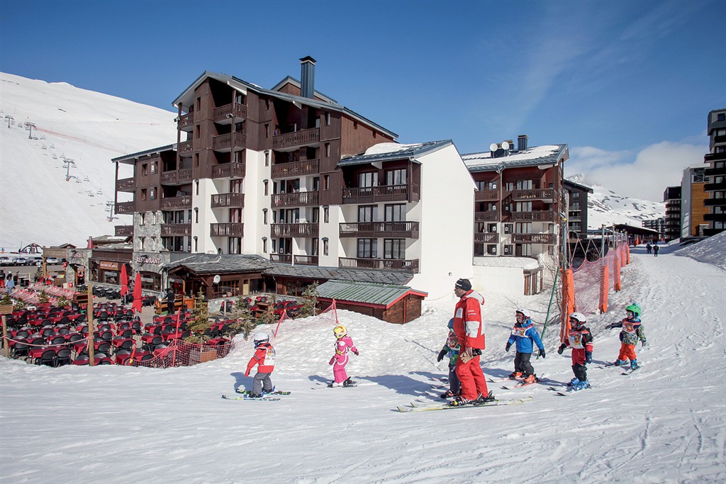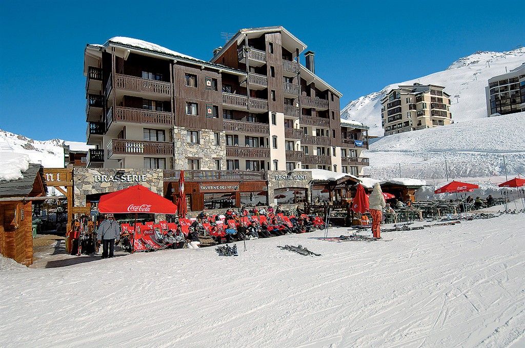 - poloha v tesnej blízkosti zjazdoviek priamo oproti podzemnej dráhe na ľadovec Grande Motte