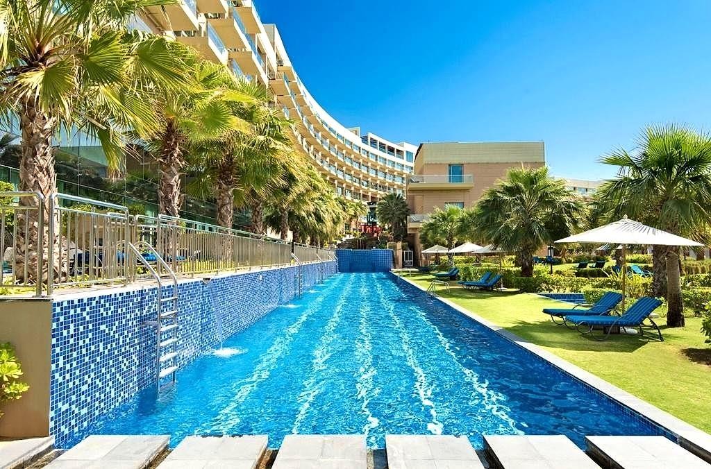 Luxusný hotel zo známeho hotelového reťazca sa nachádza na umelom ostrove v tvare palmy s úchvatným výhľadom na Dubaj. Hotel zaisťuje zadarmo dopravu do Mall of the Emirates a Dubai Mall.