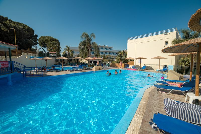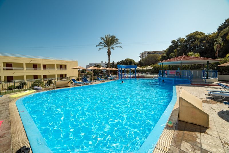 hlavná reštaurácia • bar pri bazéne • v susedstve hotela obchodíky so suvenírmi, grécke taverny a bary • pred hotelom zastávka autobusov do mesta Rodos • bezplatné Wi-Fi pripojenie v lobby • bazén s ležadlami a slnečníkmi • detský bazén • detské ihrisko • miniklub • animačný tím Klub Leto v termíne 29.6. - 4.9.2026