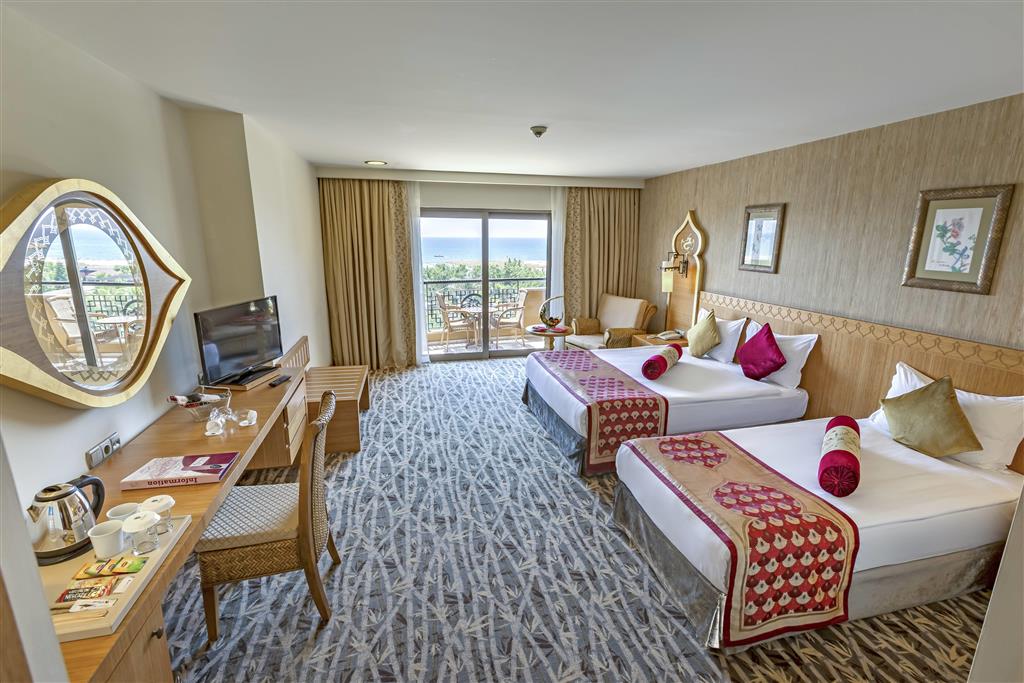 hlavná reštaurácia • 4 a la carte reštaurácie za poplatok • snack bar • cukráreň • turecký kútik • 10 barov • diskotéka • nákupná pasáž • bezplatné Wi-Fi pripojenie • konferenčné priestory • SPA centrum • lekár • 2 vonkajšie bazény • detský bazén • detské ihrisko • miniklub • plážový volejbal • fitnescentrum • tenis • stolný tenis • šípky • bowling • minifutbal • medzinárodný animačný tím