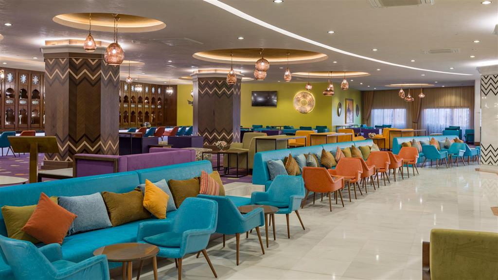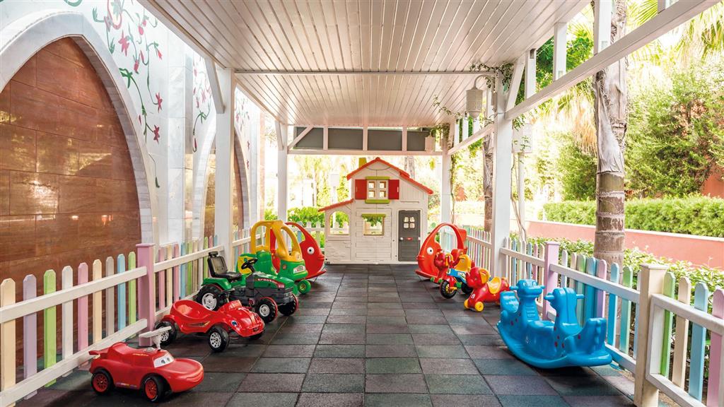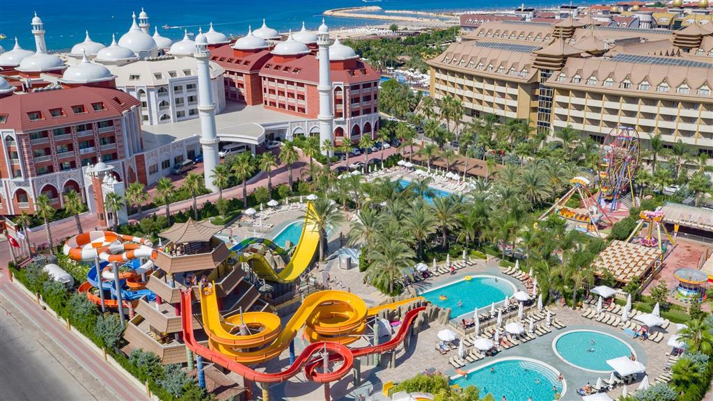 hlavná reštaurácia • 3 a la carte reštaurácie • snack bar • bistro• cukráreň • 4 bary • diskotéka • nákupná pasáž • bezplatné Wi-Fi pripojenie • konferenčné priestory • SPA centrum • lekár • vonkajší bazén • plavecký bazén • relaxačný bazén • aquapark so šmýkačkami pre deti aj dospelých • vnútorný bazén • detské bazény • vnútorný detský bazén • detské ihrisko • miniklub • minidisco • lunapark • plážový volejbal • fitnescentrum • tenis • stolný tenis • šípky • lukostreľba • minifutbal • pestrý športový program • medzinárodný animačný tím