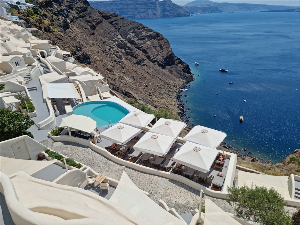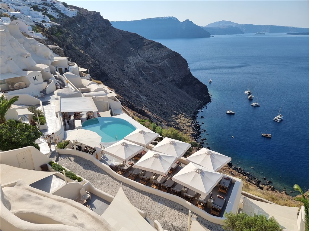 Pozrite sa ráno z okna a vidíte hlbokomorskú modrú farbu Egejského mora, ktoré vypĺňa hlboký sopečný kráter. Tam kdesi pod zemou to neustále buble a priamo pred Vami vyrastá nový ostrov. Dajte si ľahké raňajky a la karte alebo si ich dajte priniesť priamo do izby. Vyskúšajte karamelizovaný banán s figami a džús z červeného grapefruitu. Oddychujte, relaxujte, okúpte sa v bazéne a dajte si ľadové latte. Slnko poriadne opaľuje. Nezabudnite na fotografie na instagram a večer vyskúšajte ďalšiu reštauráciu Fino. Odporúčame chobotnicu na kus kuse alebo čiernu tresku na mrkvovom pyré,
