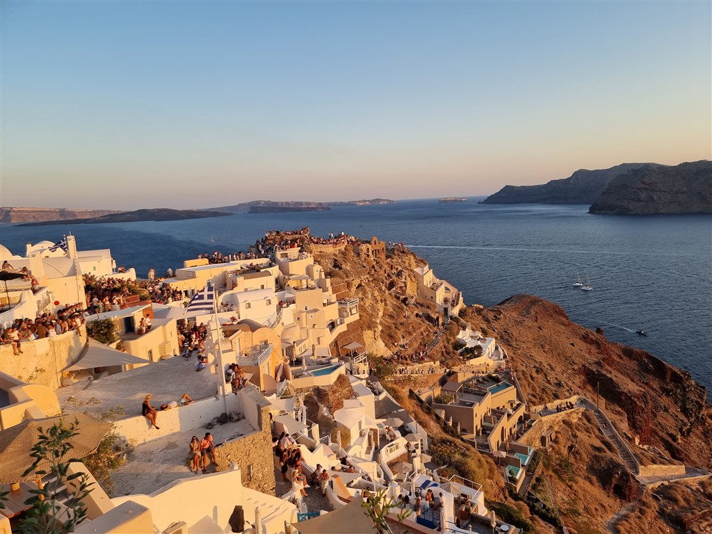 Alexander, Hygeia, Apolón, Zeus, Perikles, Stavros Niarchos, tých všetkých a mnohé ďalšie osobnosti či bohov sme na našej ceste spoznali. Teraz si zaslúžime oddych. Z Atén preletíme na Santorini. Ak sedíte pri okne na ľavej strane lietadla tak Vás Santorini privíta v plnej kráse a nádherne uvidíte celú kalderu. Transfer do Vášho luxusného hotela v dedinke Oia s nerušeným výhľadom na kalderu. Oddych. Večer sa vydajte na prechádzku do Oia (2 minúty peši) a na jej konci si pozrite legendárny západ slnka. Prvú večeru si skúste dať v Karma Greek, Sufiko Ikario a k tomu fľašu miestneho Assyrtika a prvý večer bude absolútne dokonalý. Pozor na schody!