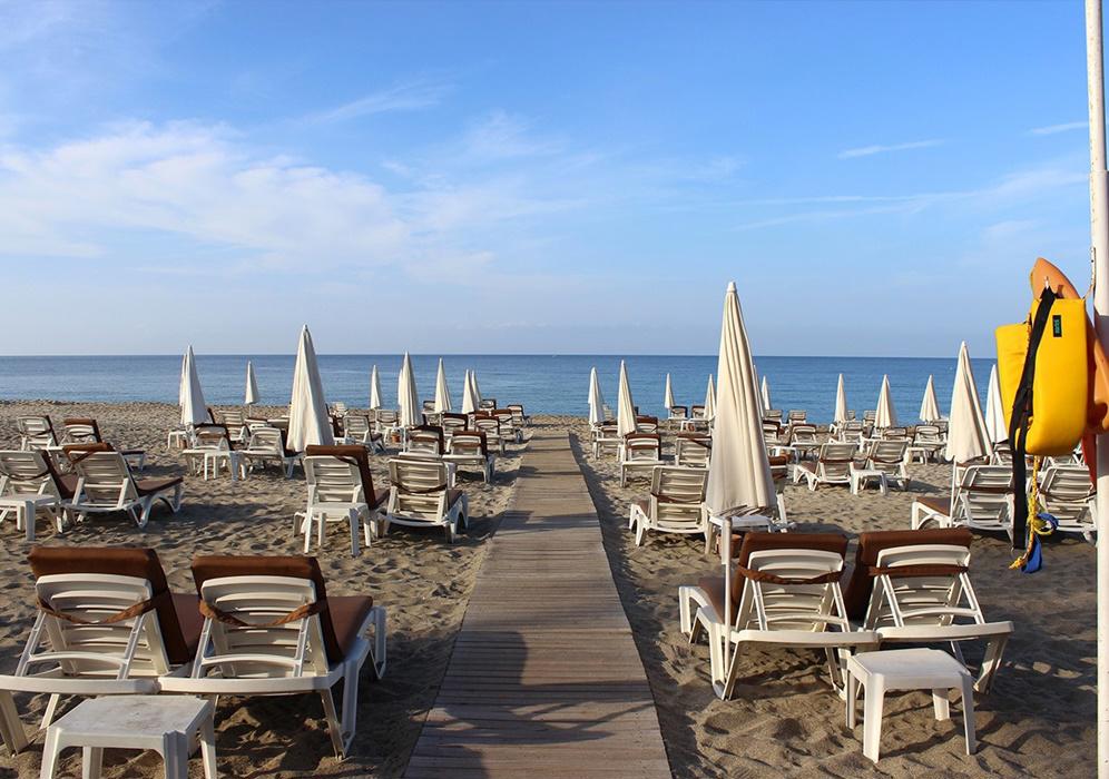 priamo pri hoteli • piesočnatá • slnečníky a ležadlá za poplatok