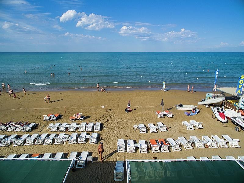 Piesočná pláž cca 200 m od hotela, bar na pláži, lehátka a slnečníky zadarmo.