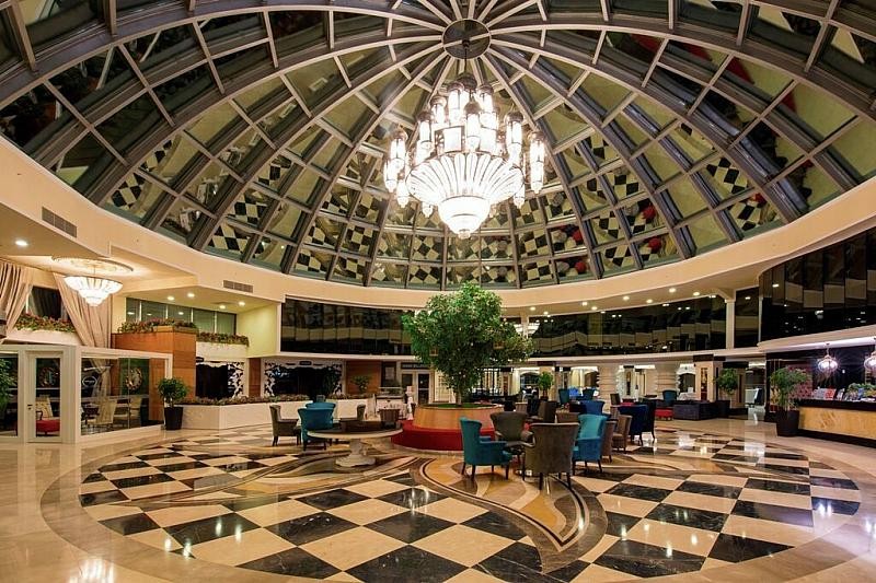 343 izieb situovaných v 6-poschodovej hlavnej budove, vedľajšej budove v záhrade a annexe oproti cez ulicu. Vstupná hala s recepciou, výťahy, reštaurácia s terasou, niekoľko barov, obchodná arkáda, kaderníctvo, konferenčná miestnosť. Vonku 2 bazény (jeden z nich so šmykľavkami), terasa s lehátkami a slnečníkmi zdarma, osušky zdarma (výmena za poplatok).