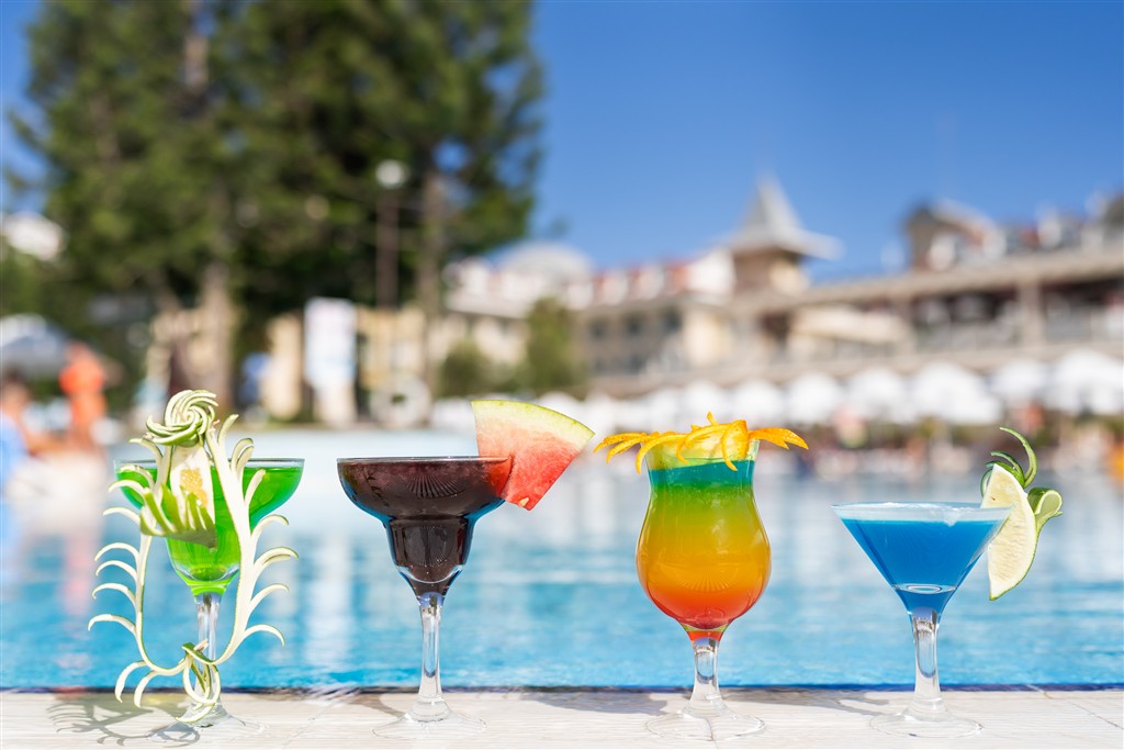 raňajky (07:00-10:00 h), obedy (12:30-14:00 h) a večere (19:00-21:00 h) formou bufetových stolov • neskoré raňajky (10:00-11:00 h) • snacky počas dňa • popoludní káva, čaj, koláče, zmrzlina • cukráreň (10:00-17:00 h) • nočný snack (21:30-07:00 h) • nealkoholické, miestne a vybrané importované alkoholické nápoje • pivo a víno 24h • a la carte reštaurácie raz za pobyt zdarma