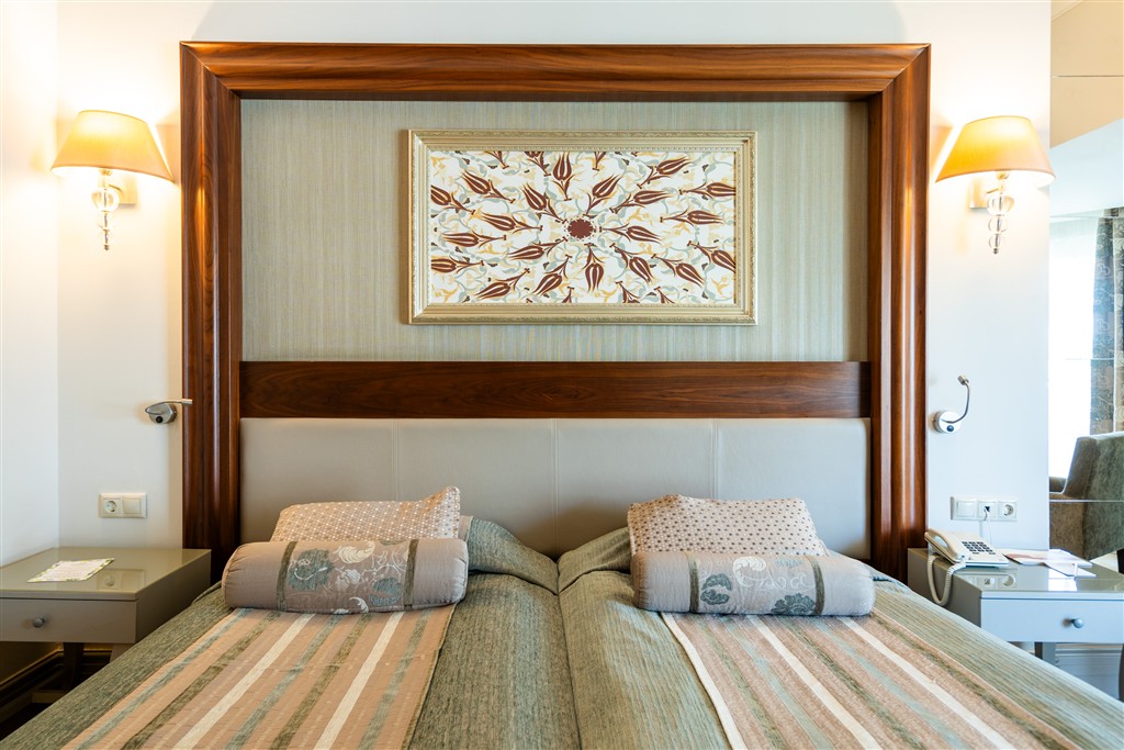 hotel pozostáva z 5 budov • 462 izieb • reštaurácia • 3 a la carte reštaurácie (raz za pobyt zdarma, nutná rezervácia) • Wi-Fi (zdarma) • internetová kaviareň (za poplatok) • bary • disco • sauna • turecké kúpele • procedúry SPA centra za poplatok • biliard a bowling (za poplatok) • hlavný bazén • detský bazén • aquapark • miniklub • konferenčné miestnosti
