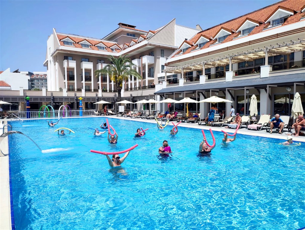 recepcia, WiFi (zdarma), hlavná reštaurácia, á la carte reštaurácia (talianska a mexická), lobby bar, bar pri bazéne, plážový bar, vonkajší a vnútorný bazén pre dospelých a pre deti, bazén s toboganmi, ležadlá a slnečníky pri bazéne a na pláži (zdarma), turecké kúpele, sauna (zdarma), kaderníctvo, masáže (za poplatok), posilňovňa, o vhodnosti pre imobilných klientov sa prosím informujte v CK