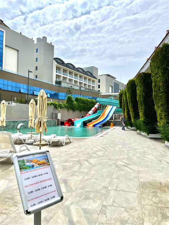 Menší moderný hotel Side Story Hotel & Spa sa nachádza v populárnom letovisku Side, v časti Evrenseki, len pár krokov od piesočnatej pláže. Pozdĺž pláže vedie krásna pešia promenáda. V okolí nechýba množstvo obchodov s lákavým tovarom. Časť Evrenseki patrí medzi najpopulárnejšie zóny Tureckej riviéry.