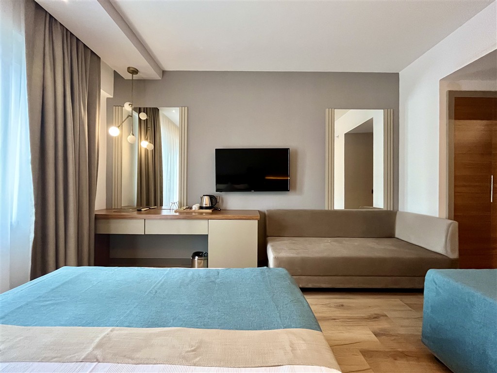 TV/SAT, telefón, klimatizácia, trezor, WiFi (obe zdarma), minichladnička, set na prípravu kávy a čaju, vlastné sociálne zariadenie, sušič vlasov, balkón alebo terasa, detská postieľka (na vyžiadanie, zdarma)
