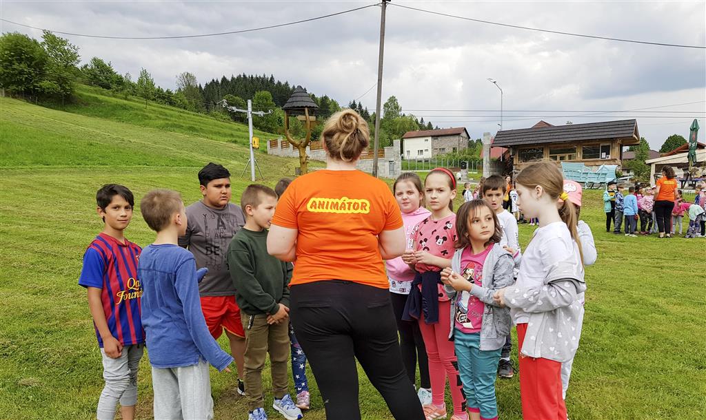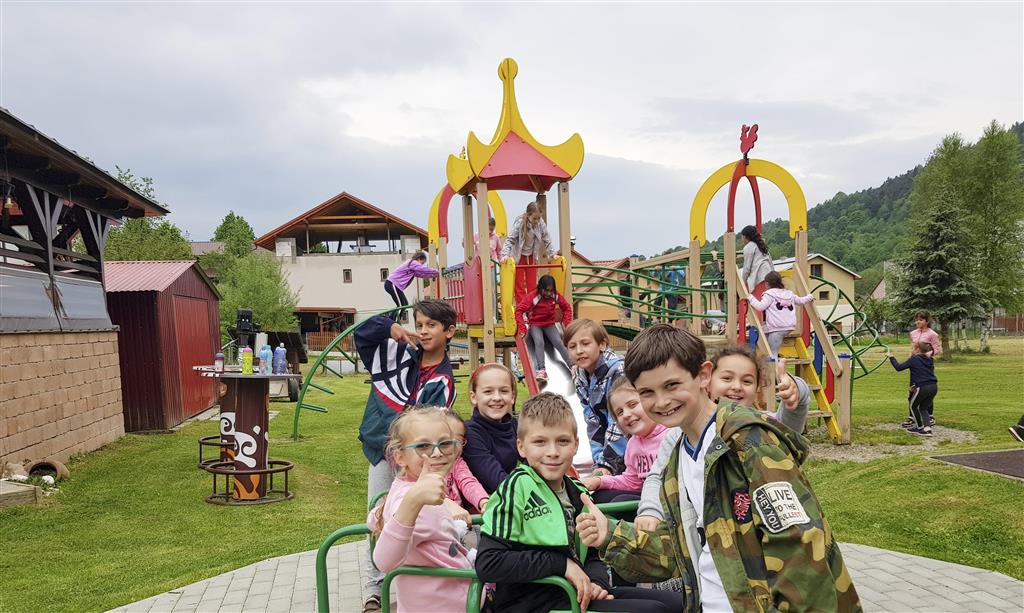 vnútorný bazén, detské ihrisko, jedáleň, spoločenská miestnosť (učebňa), herňa, bufet, TV, ohnisko, univerzálne prírodné ihrisko, Wi-Fi