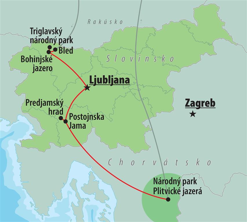 Poznávací zájazd atraktívne kombinujúci prehliadku miest s návštevou prírodných unikátov. Očarujúca atmosféra hlavného mesta Ljubljana sa ešte viac umocní plavbu po jazere Bled k jedinému slovinskému ostrovu. Návšteva fascinujúcej jaskyne Postojna Jama, prechádzka komnatami Predjamského hradu postaveného v skale a cesta do slávneho národného parku Plitvice v Chorvátsku.