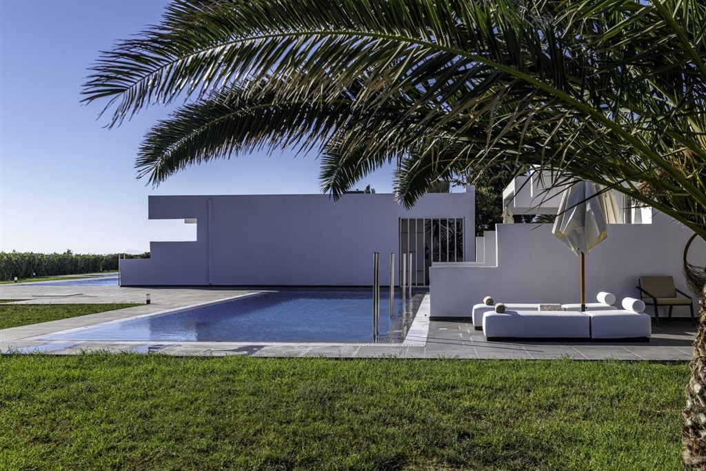 slnečná terasa s ležadlami a slnečníkmi pri bazéne (zadarmo)