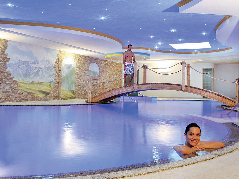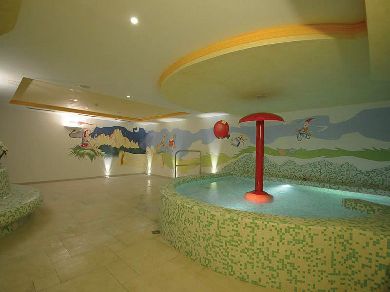 veľký bazén 100 m2 s umelým vodopádom, vírivkou a lehátkami, aquapark (tobogan, spray park, 2 veľké šmýkľavky, detský park), vírivka# až pre 8 osôb, fínska sauna#, infrasauna#, para#, aromatická para#, ľadový kúpeľ#, multifunkčná aromatické sprchy#, horské slnko#, Kneippov chodník#, masáže*, kozmetické služby*, veľká nadštandardne vybavená posilňovňa;