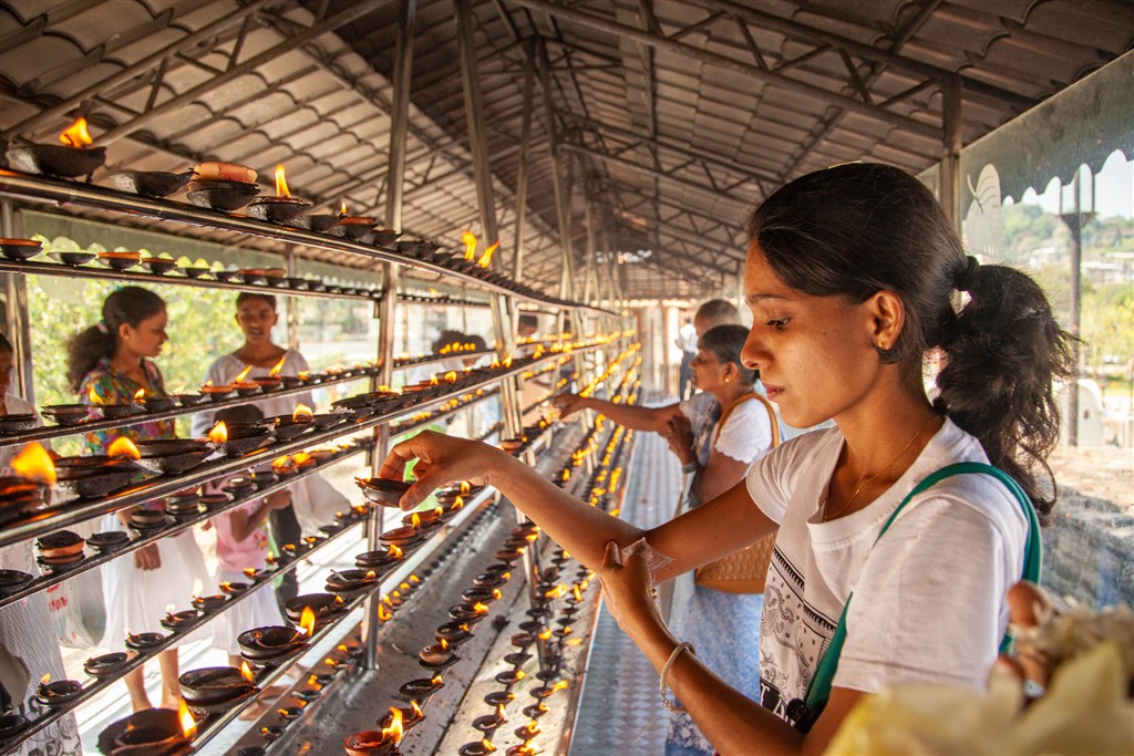 Aj tento deň zažijete viac než iní. Pravý Cejlón, ktorý tu už o pár rokov nebude. Usmievavých domorodcov v ich dedinkách mimo klasických turistických trás. Nasadneme na Srí Lanský taxík – drevené káry ťahané vodnými byvolmi nás privezú až k jazeru plnému lotosových kvetov. Budeme sa plaviť na domorodých lodičkách krížom až k pralesu. Uvidíme divoké slony? Ako pestujú domorodci ryžu, kokos, betel a ako pripravujú lokálny čaj? Domčeky z prútia, hlinená pec na drevo, na oblečenie sarong a sárí. Pokoj, pokora a jednoduchý šťastný život v raji. Ako tu môžu mať tak čisto? Domorodý obed podávaný na banánovom liste je neuveriteľne chutný. Toto zažil málokto. Užívame si pohostinnosť miestnych obyvateľov. Kundate gate dumi kun. Chodíme sem roky a toho malého slona domáci už volajú “Bubo”. Poobede navštívime skalné chrámy v DAMBULLA (UNESCO): budhistické sochy a impresívne fresky, komplex piatich jaskýň Aja Maha Vijara, sochy Upulvana a Samana, výjavy z pekla, veľký zlatý Budha a škriekajúce opice na mangovníku.