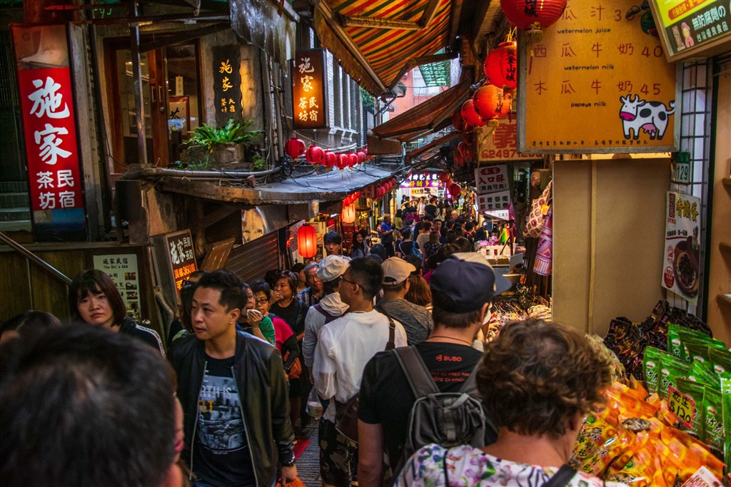 Vetrom a slanou vodou ošľahané kamene tu vyzerajú ako zmrazené vlny alebo stuhnuté plamene. Príroda sa tu predvádza v celej svojej sile a fantázii – každá skala má tvár, tvar, príbeh. Počúvame, ako pod nami buráca oceán, zatiaľ čo sa vlny márne snažia dosiahnuť naše chodidlá. A o pár metrov ďalej – dôkaz, že aj človek sa musel prispôsobiť: zábrany, ktoré majú zabrániť silným príbojom zobrať so sebou celé dediny. Zátoka Yin-Yang, miesto, kde sa slaná voda stretáva s podzemnými prameňmi a zafarbí sa do dvoch odtieňov. Tajomné miesto, kde kraby pobehujú pomedzi kamene, akoby strážili vchod do iného sveta. A k tomu šálka čaju – nie hocijakého, ale miestneho zeleného, pripraveného v útulnej čajovni jednej z najkrajších banských dediniek na ostrove. Uzučké uličky dediny Jiufen, lampióny, vôňa grilovaného tofu, historické čajovne a výhľady na more, ktoré sa rozlieva až po obzor. Toto miesto inšpirovalo aj známy animovaný film Cesta do fantázie a vy tu pochopíte prečo. Čas sa tu spomaľuje. Ale len na chvíľu.