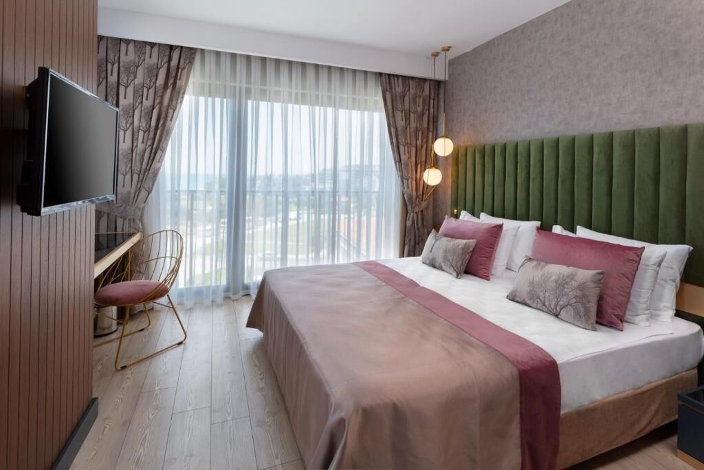 Úvod: Tento príjemný 5* hotel vás očarí svojou skvelou polohou len 55 km od medzinárodného letiska Antalya a 80 m od nádhernej piesočnatej pláže s pozvoľným vstupom do mora. V tomto hoteli sa rozhodne nudiť nebudete bohaté množstvo športov ako aj večerné programy vo vás zanechajú pocit nezabudnuteľnej dovolenky. Hotel je dostupný od 16+. Do historického centra sa dostanete dolmušom alebo aj taxíkom.