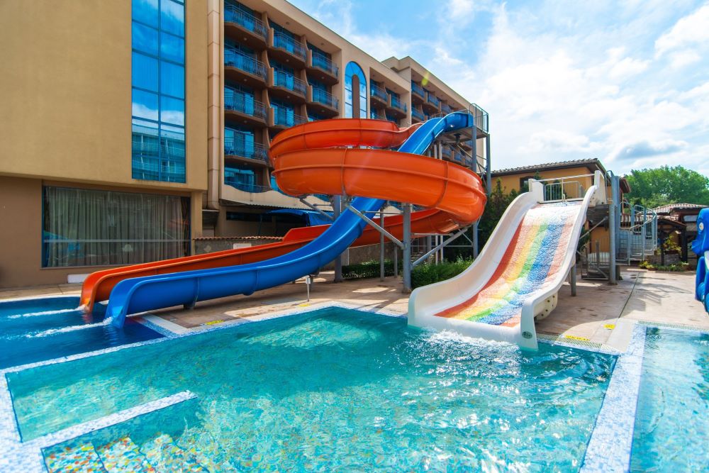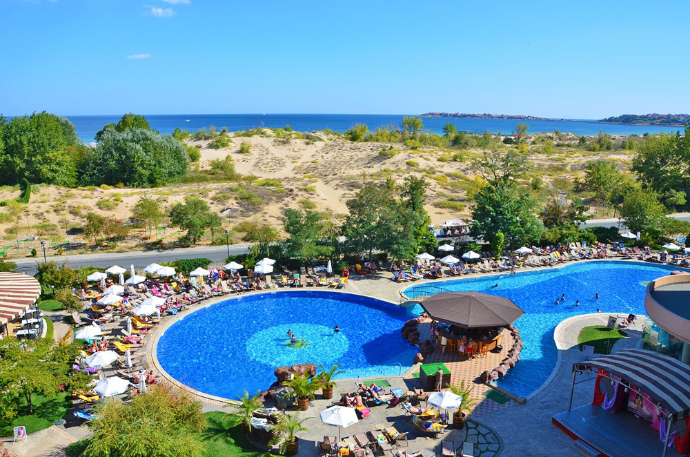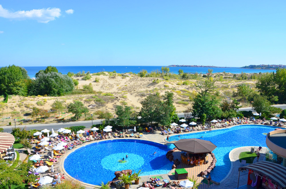Hotel sa nachádza v pokojnejšej časti Slnečného pobrežia. Od pláže ho oddeľuje len piesočná duna.