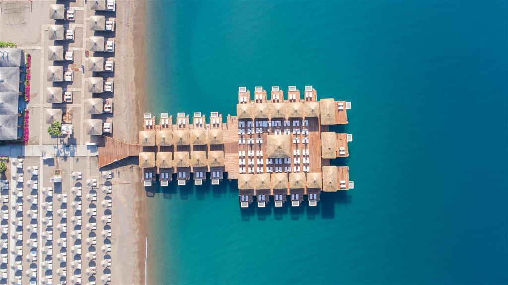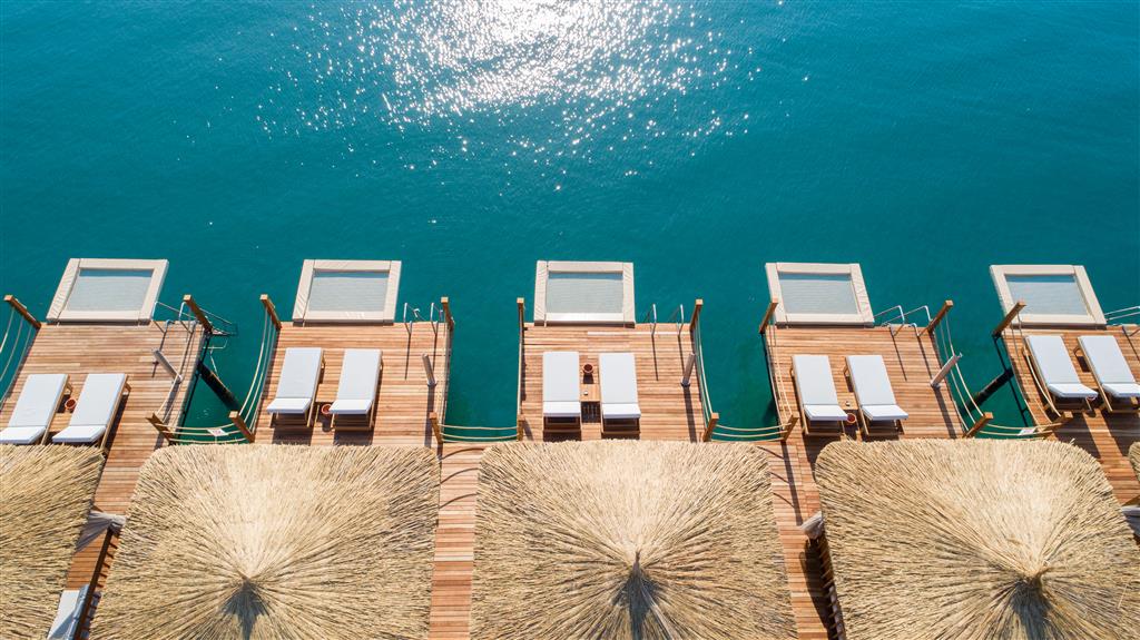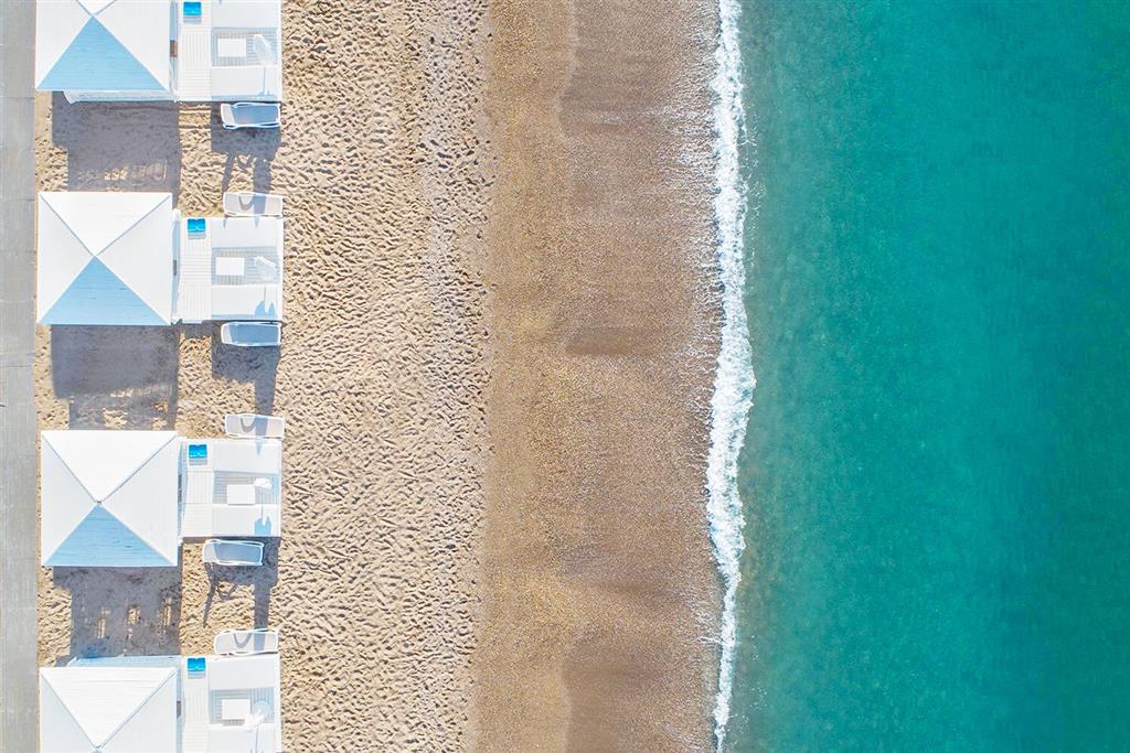 priamo pri hoteli • piesočnatá pláž • pozvoľný vstup do mora • ležadlá, slnečníky, matrace a plážové osušky zdarma • vodné športy za poplatok • bar na pláži