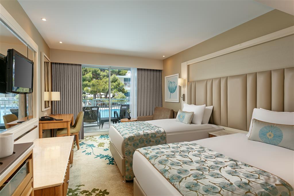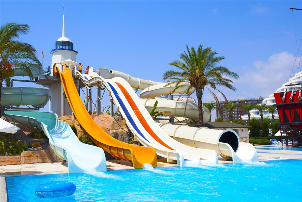 hotel zrekonštruovaný v roku 2014 • vstupná hala s recepciou • hlavná reštaurácia • 4 a la carte reštaurácie (za poplatok) • bary • Wi-Fi v priestoroch hotela zdarma • internetový kútik (za poplatok) • disco • vnútorný bazén • fitnes • sauna • jacuzzi a turecké kúpele (zdarma) • masáže, služby wellness centra (za poplatok) • basketbal • volejbal • boccia • bowling (za poplatok) • biliard a herňa (za poplatok) • profesionálne futbalové ihrisko (za poplatok) • v areáli hotela 2 vonkajšie bazény • aquapark so šmýkačkami • 4 tenisové kurty • animácie počas dňa a večerné predstavenia • živá hudba